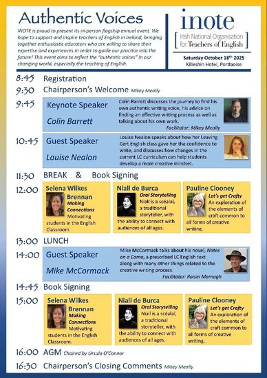 If you are an English teacher, I look forward to seeing you there, and if you are not, but you know one, maybe you’d pass on this information to them. iNote is a wonderful, important organisation for teachers of English.